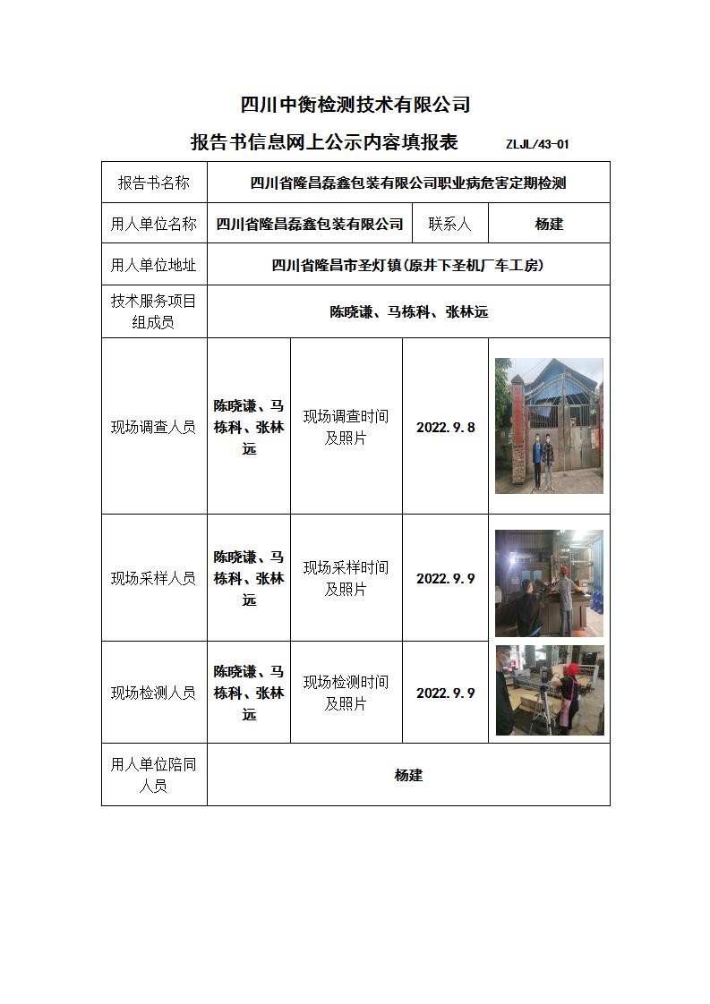 四川省隆昌磊鑫包裝有限公司職業病危害定期檢測