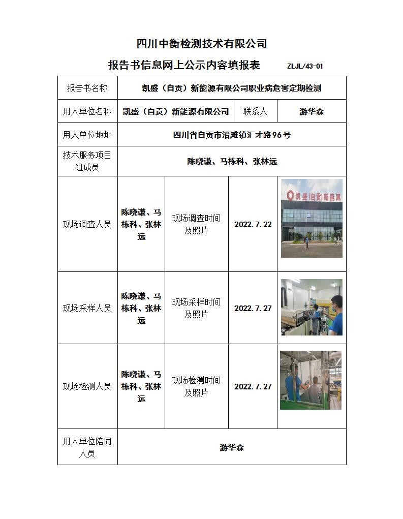 凱盛(自貢)新能源有限公司職業病危害定期檢測