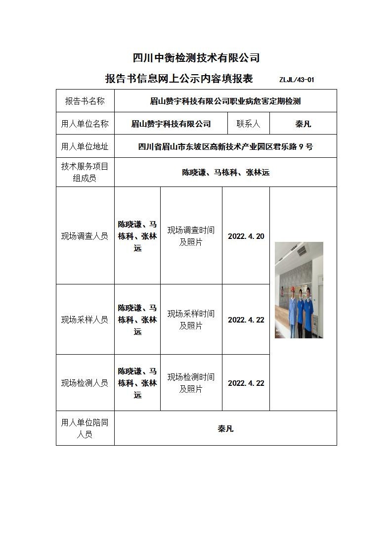 眉山贊宇科技有限公司職業(yè)病危害定期檢測