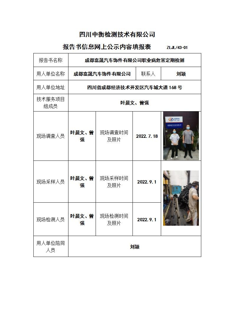 成都富晟汽車飾件有限公司職業病危害定期檢測