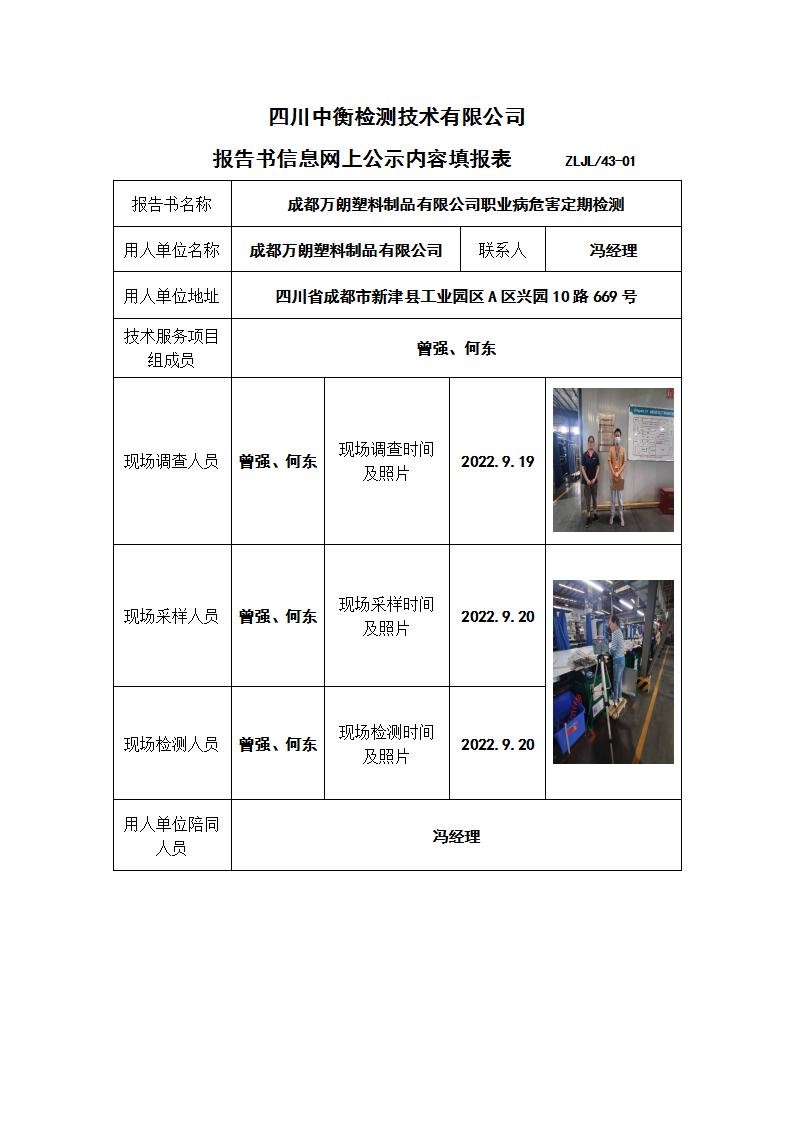 成都萬朗塑料制品有限公司職業(yè)病危害定期檢測(cè)