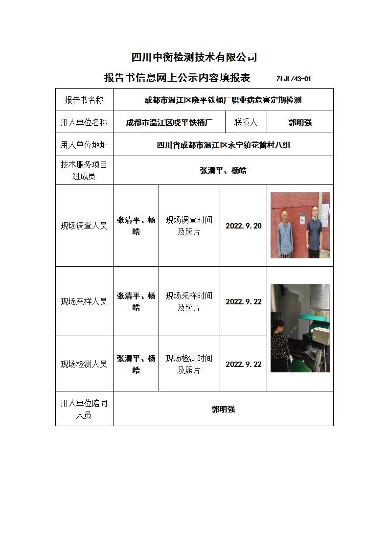 成都市溫江區曉平鐵桶廠職業病危害定期檢測