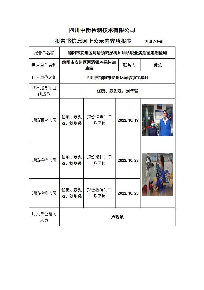 綿陽市安州區河清鎮雞屎樹加油站職業病危害定期檢測