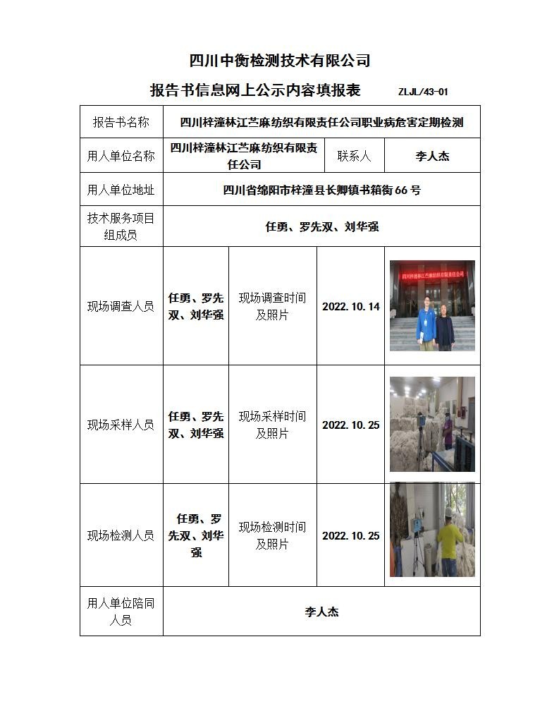 四川梓潼林江苧麻紡織有限責(zé)任公司職業(yè)病危害定期檢測(cè)
