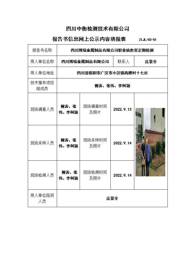 四川博瑞金屬制品有限公司職業病危害定期檢測