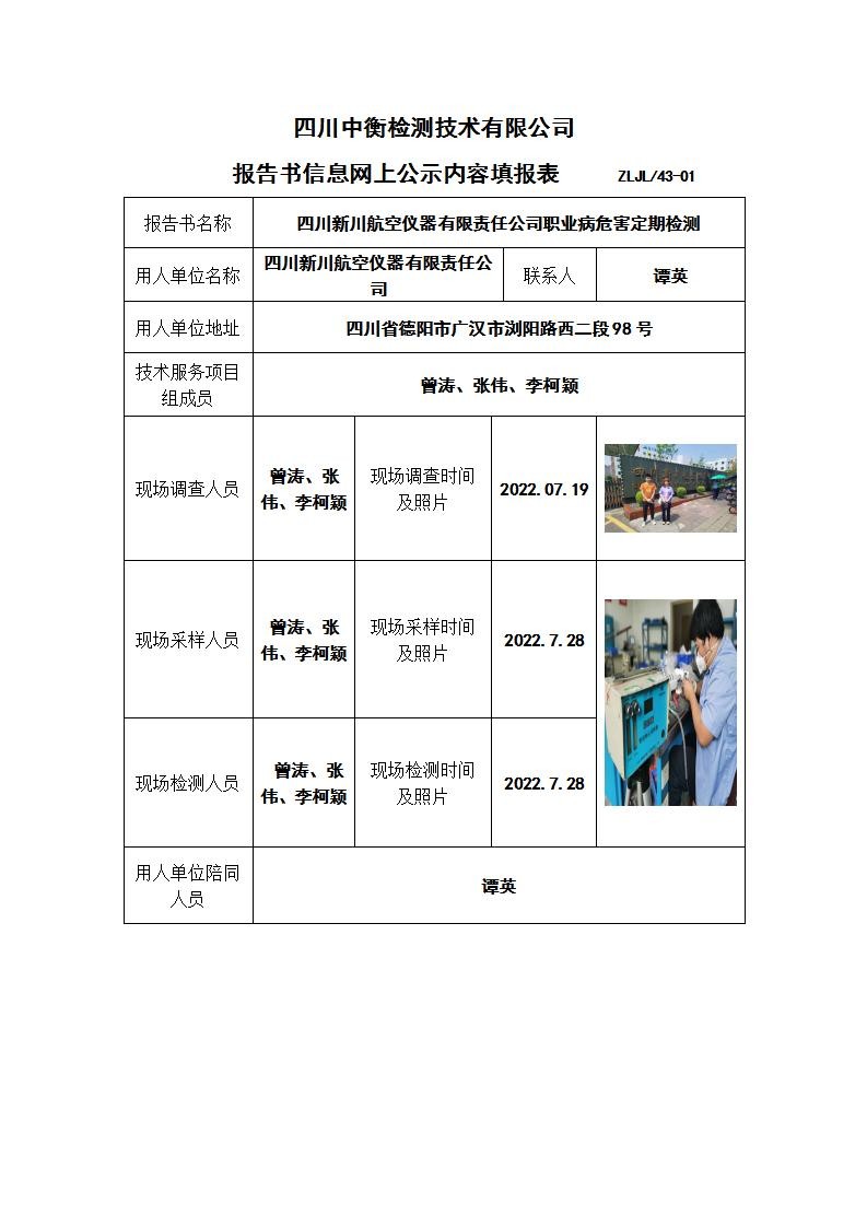 四川新川航空儀器有限責任公司職業病危害定期檢測