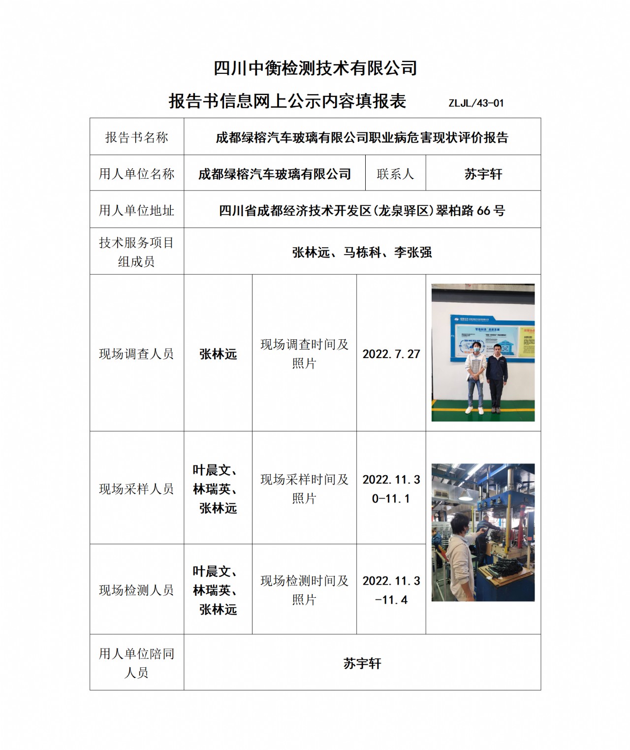 成都綠榕汽車玻璃有限公司職業病危害現狀評價報告公示