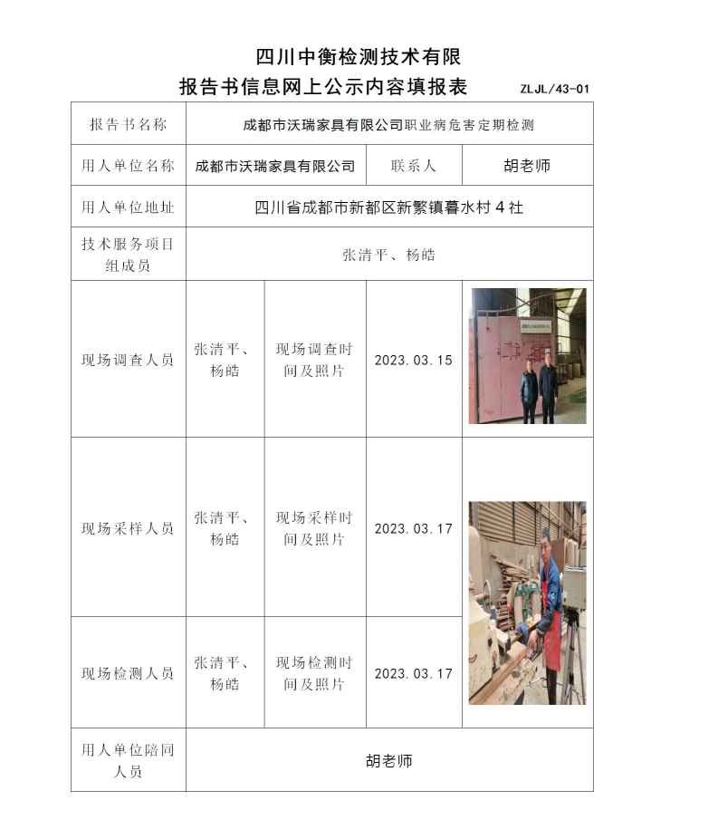 成都市沃瑞家具有限公司職業(yè)病危害定期檢測