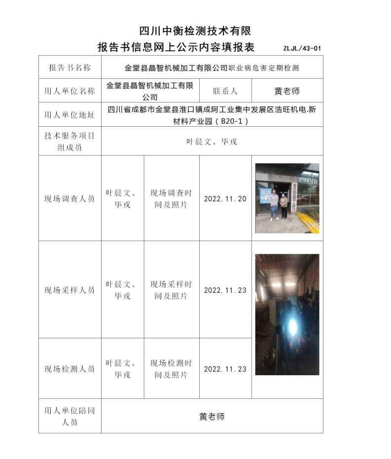 金堂縣晶智機械加工有限公司職業病危害定期檢測