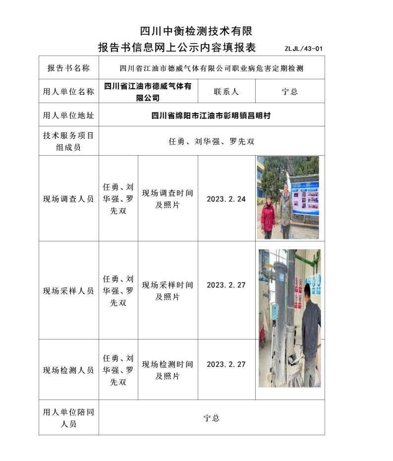 四川省江油市德威氣體有限公司職業病危害定期檢測