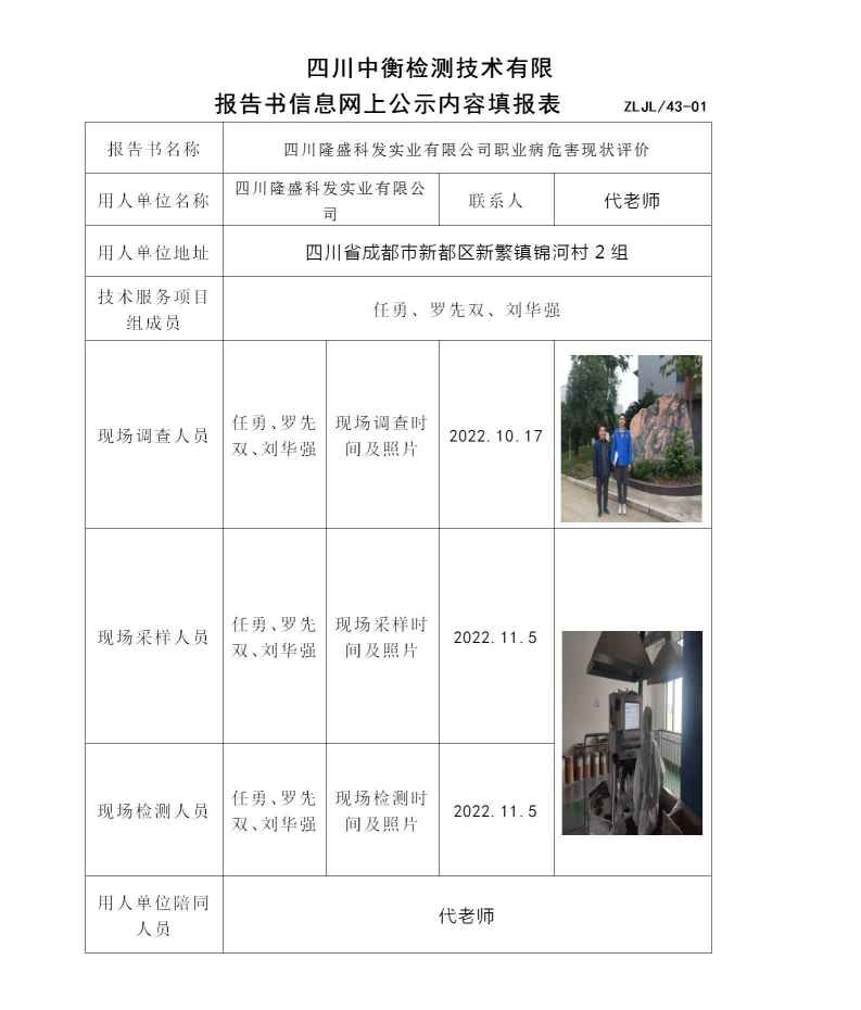 四川隆盛科發(fā)實(shí)業(yè)有限公司職業(yè)病危害現(xiàn)狀評價(jià)
