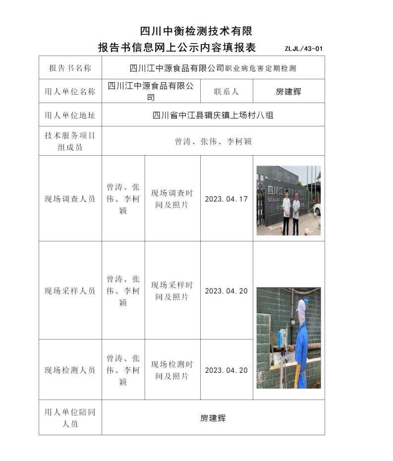 四川江中源食品有限公司職業(yè)病危害定期檢測