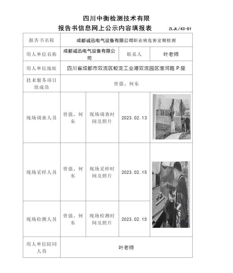 成都誠迅電氣設備有限公司職業(yè)病危害定期檢測