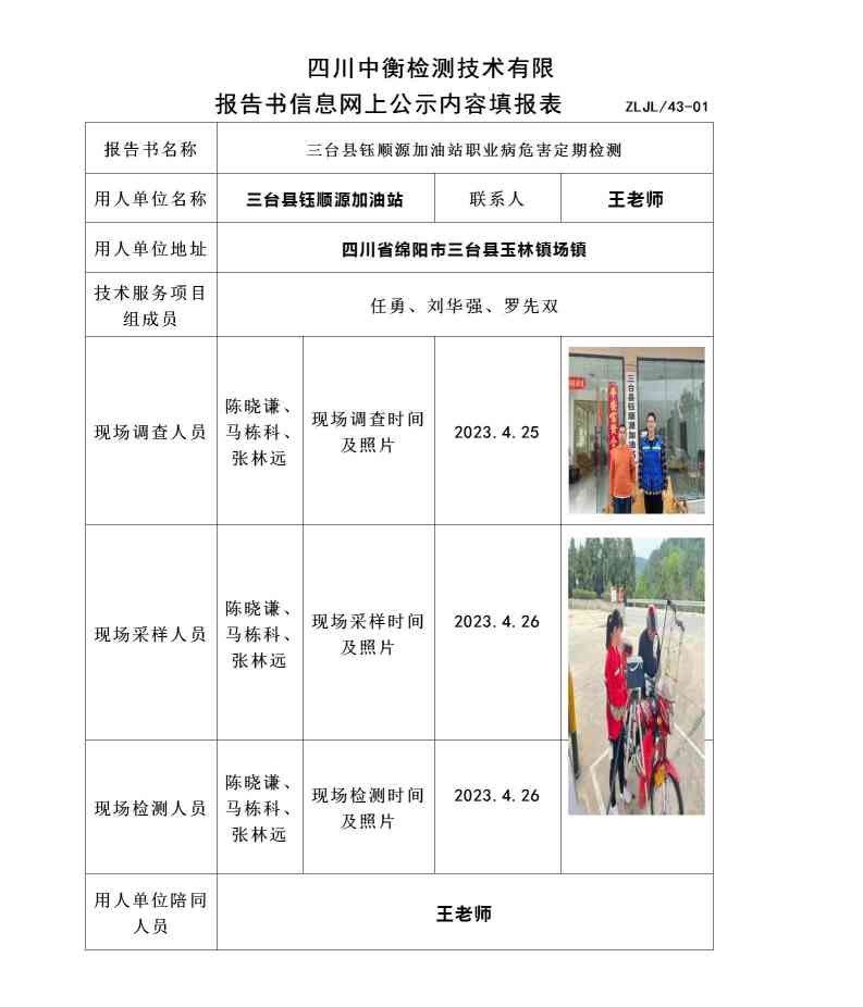 三臺縣鈺順源加油站職業病危害定期檢測