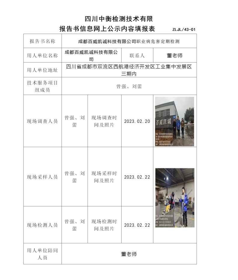 成都百威凱誠(chéng)科技有限公司職業(yè)病危害定期檢測(cè)