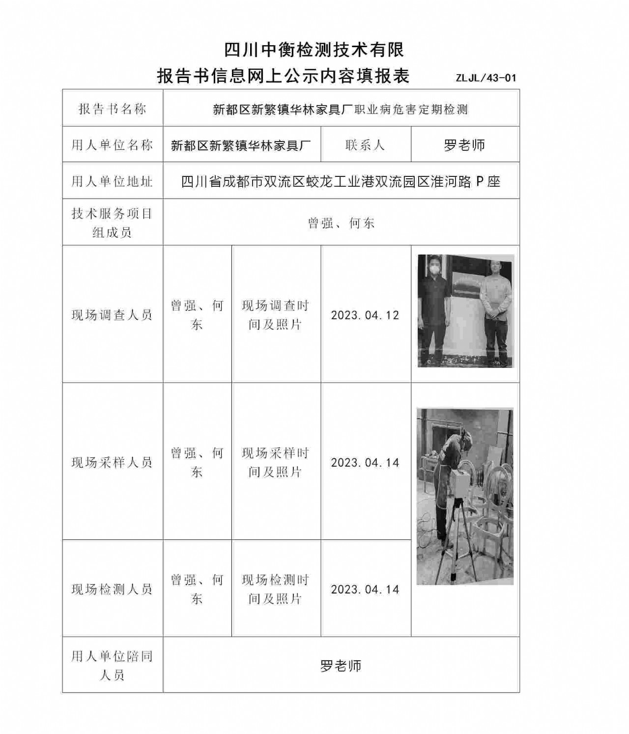 新都區(qū)新繁鎮(zhèn)華林家具廠職業(yè)病危害定期檢測