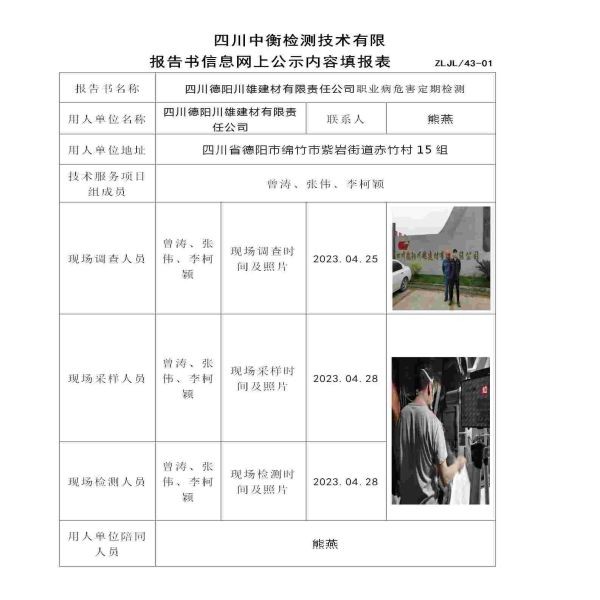 四川德陽川雄建材有限責任公司職業病危害定期檢測