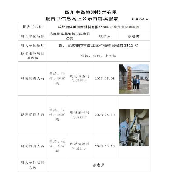 成都順佳美恒新材料有限公司職業(yè)病危害定期檢測