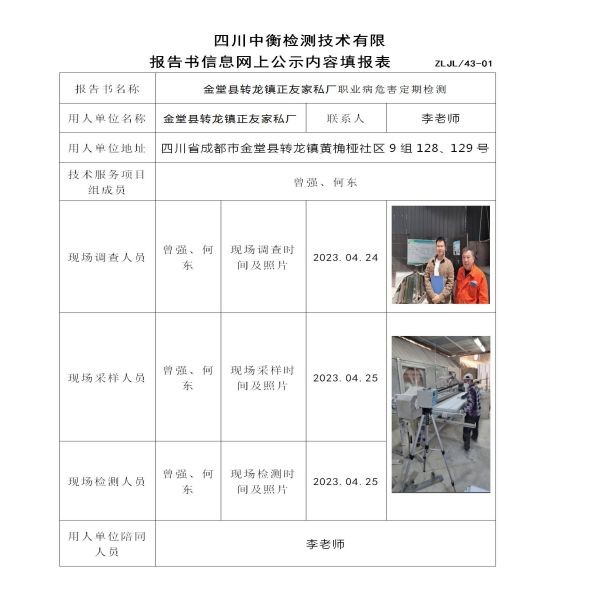 金堂縣轉龍鎮正友家私廠職業病危害定期檢測