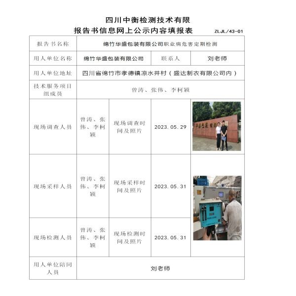 綿竹華盛包裝有限公司職業(yè)病危害定期檢測