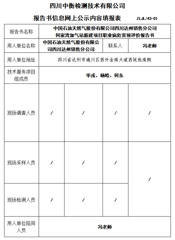 中國石油天然氣股份有限公司四川達州銷售分公司 何家灣加氣站新建項目預評價