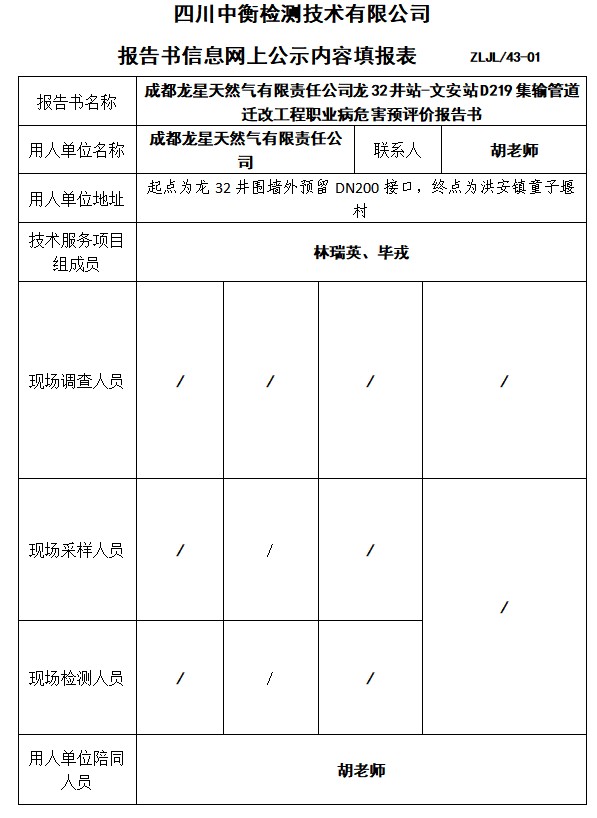 成都龍星天然氣有限責任公司龍32井站-文安站D219集輸管道遷改工程預評價