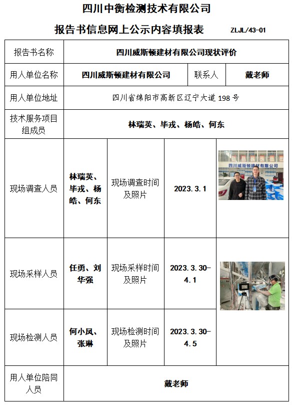 四川威斯頓建材有限公司現(xiàn)狀評價