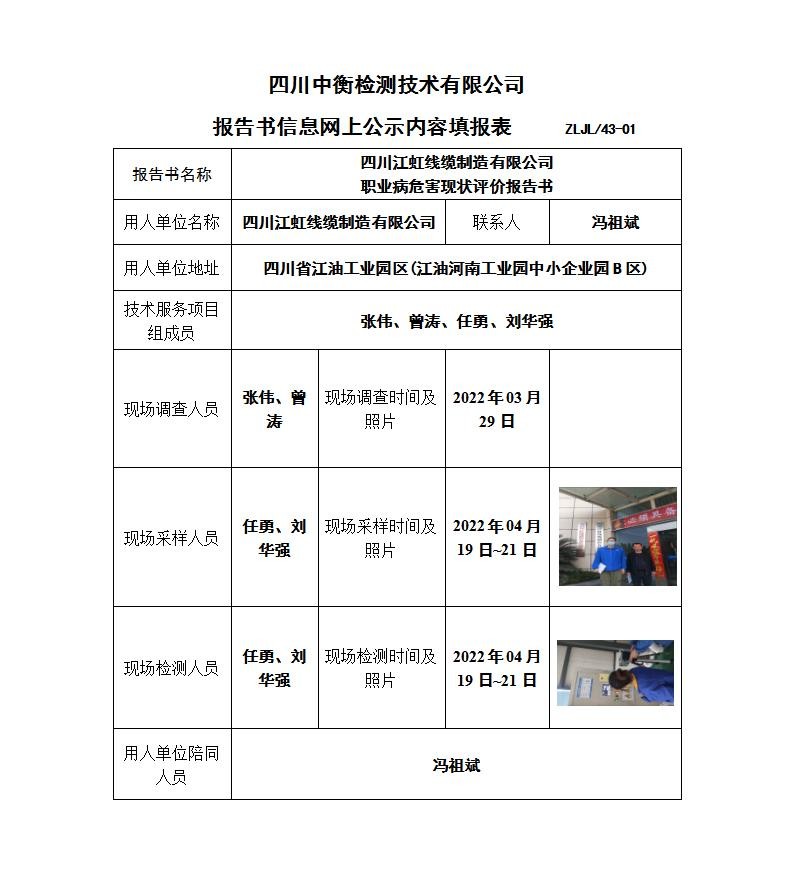 四川江虹線纜制造有限公司職業病危害現狀評價