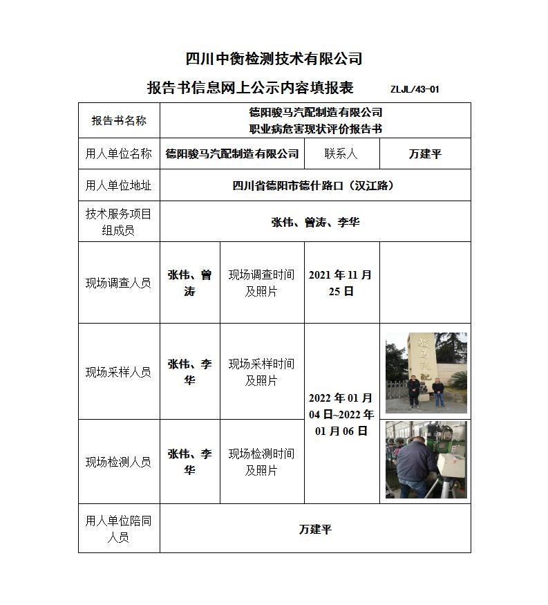 德陽駿馬汽配制造有限公司職業病危害現狀評價