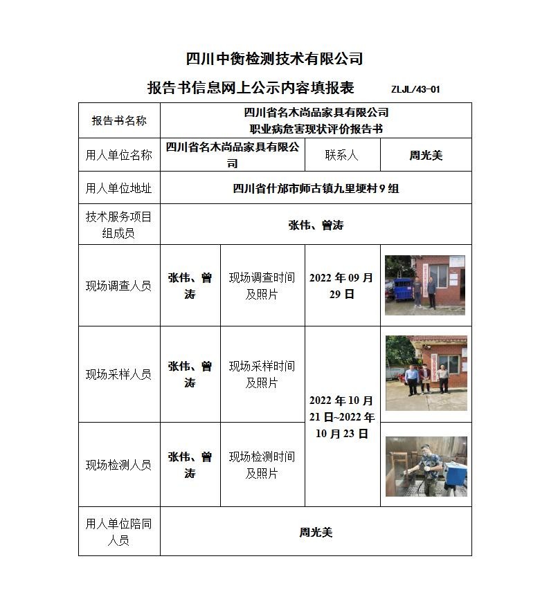 四川省名木尚品家具有限公司 職業(yè)病危害現(xiàn)狀評(píng)價(jià)