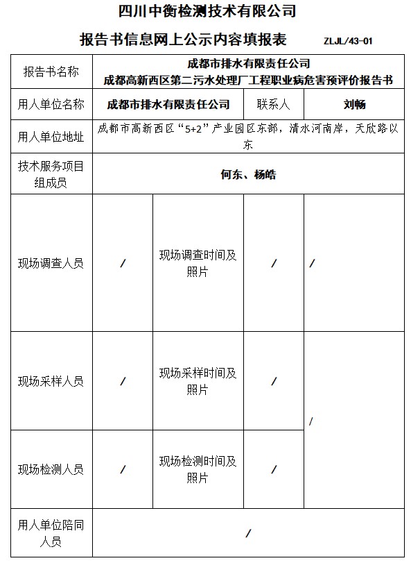 成都市排水有限責任公司 成都高新西區第二污水處理廠工程預評價
