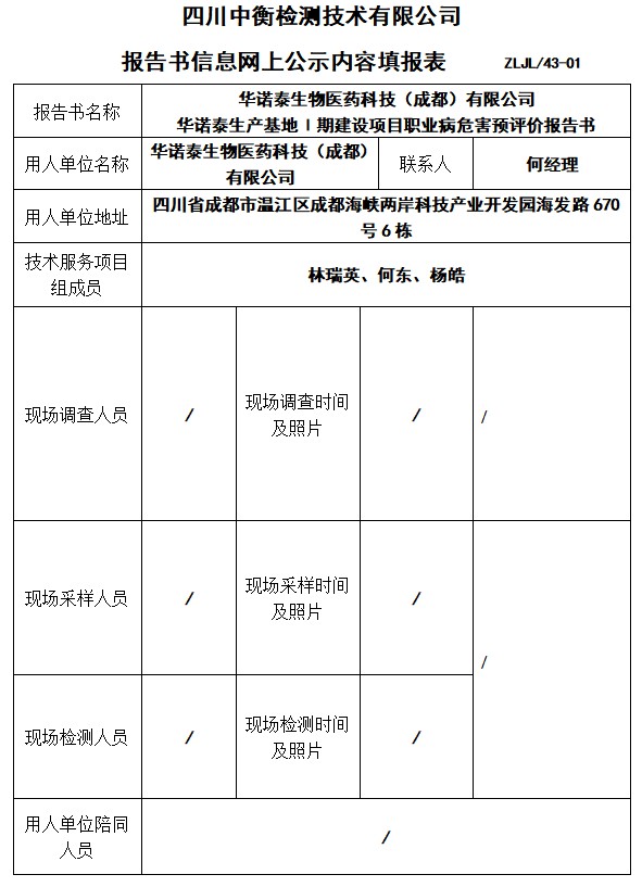 華諾泰生物醫藥科技(成都)有限公司預評價