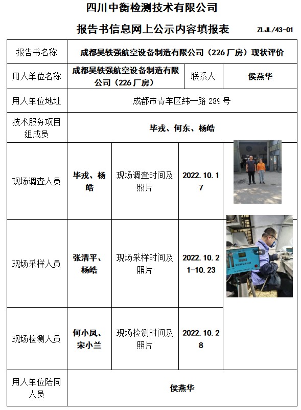 成都昊軼強航空設備制造有限公司(226廠房)現狀評價
