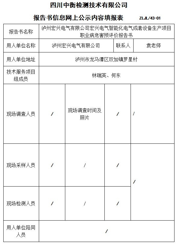 瀘州宏興電氣有限公司宏興電氣智能化電氣成套設(shè)備生產(chǎn)項目預(yù)評價