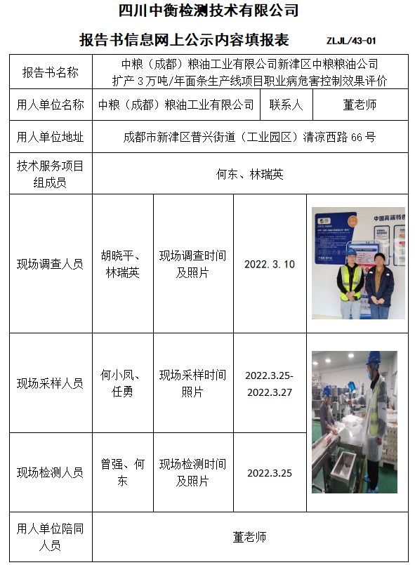 中糧(成都)糧油工業有限公司新津區中糧糧油公司 擴產3萬噸/年面條生產線項目控制效果評價