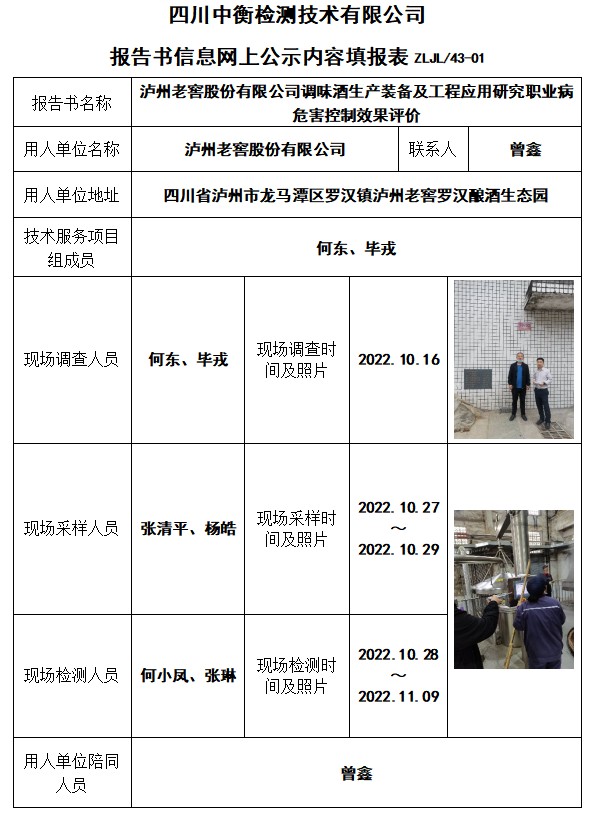 瀘州老窖股份有限公司調(diào)味酒生產(chǎn)裝備及工程應(yīng)用研究控制效果評(píng)價(jià)
