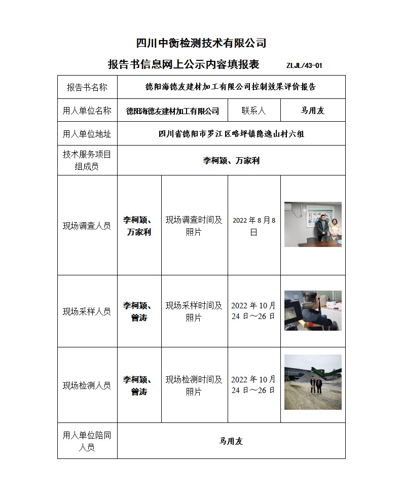德陽海德友建材加工有限公司 礦產品、道渣加工項目 職業病危害控制效果評價報告書