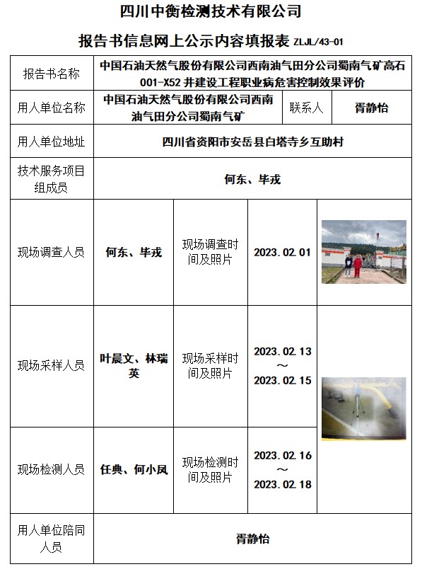 中國石油天然氣股份有限公司西南油氣田分公司蜀南氣礦高石001-X52井建設(shè)工程控制效果評價