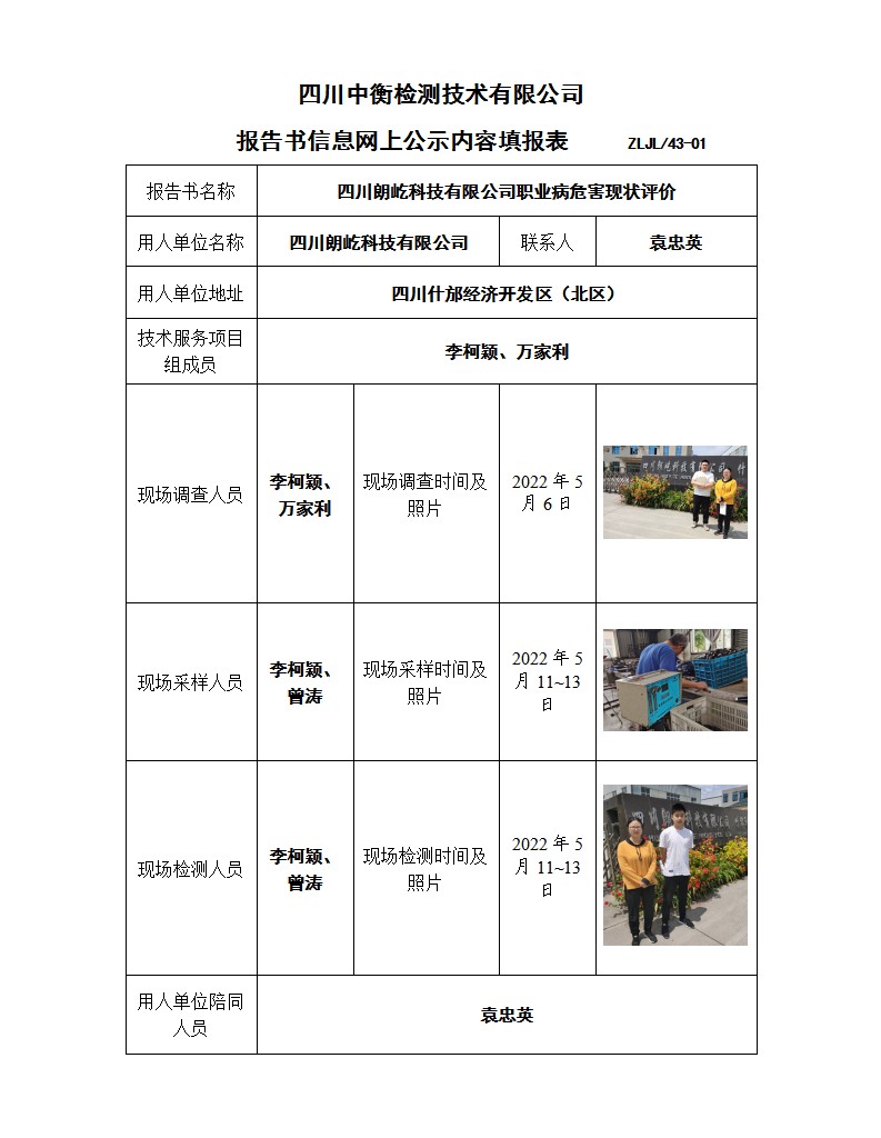 四川朗屹科技有限公司 職業(yè)病危害現(xiàn)狀評(píng)價(jià)報(bào)告書