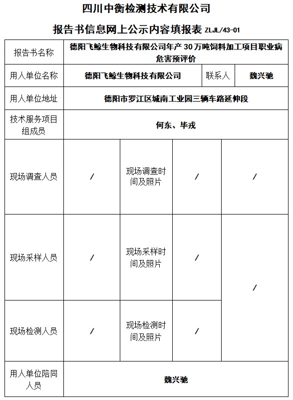 德陽飛鯨生物科技有限公司年產30萬噸飼料加工項目預評價