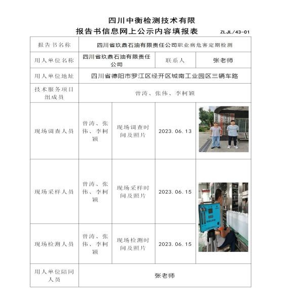 四川省玖鼎石油有限責(zé)任公司定期檢測