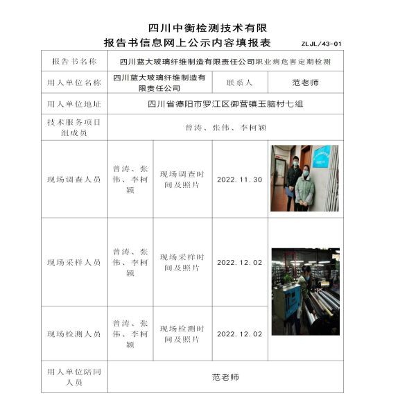 四川藍大玻璃纖維制造有限責(zé)任公司定期檢測