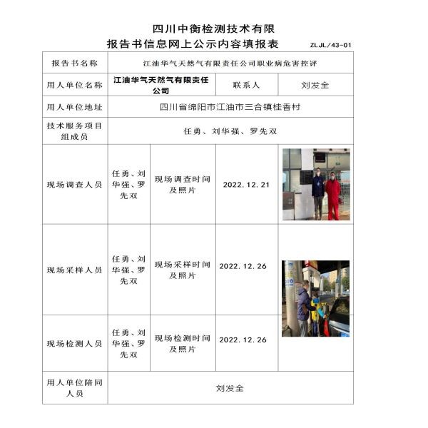 江油華氣天然氣有限責任公司定期檢測