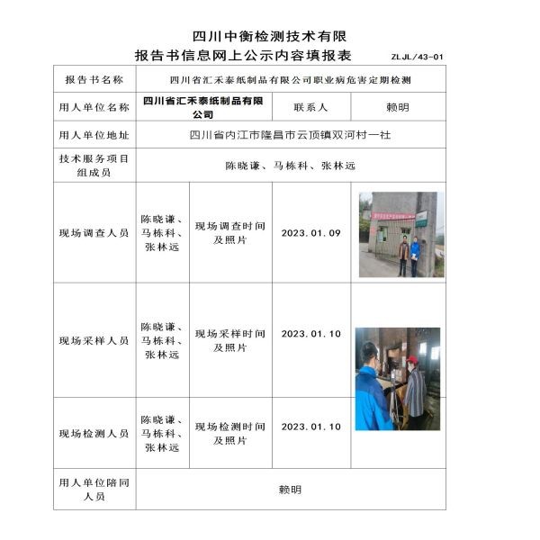 四川省匯禾泰紙制品有限公司定期檢測