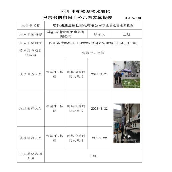 成都法迪亞櫥柜家俬有限公司定期檢測