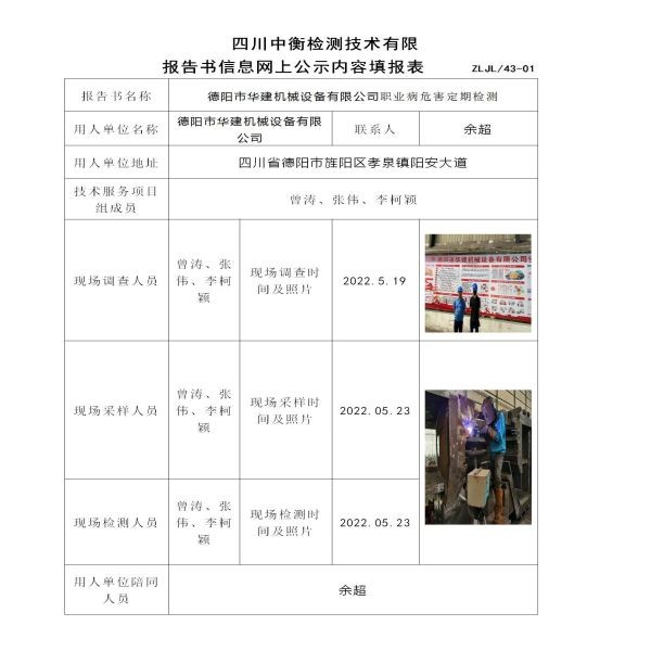 德陽市華建機械設備有限公司職業病危害定期檢測