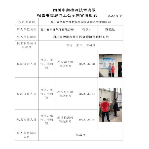 四川省琪鑠氣體有限公司職業病危害定期檢測