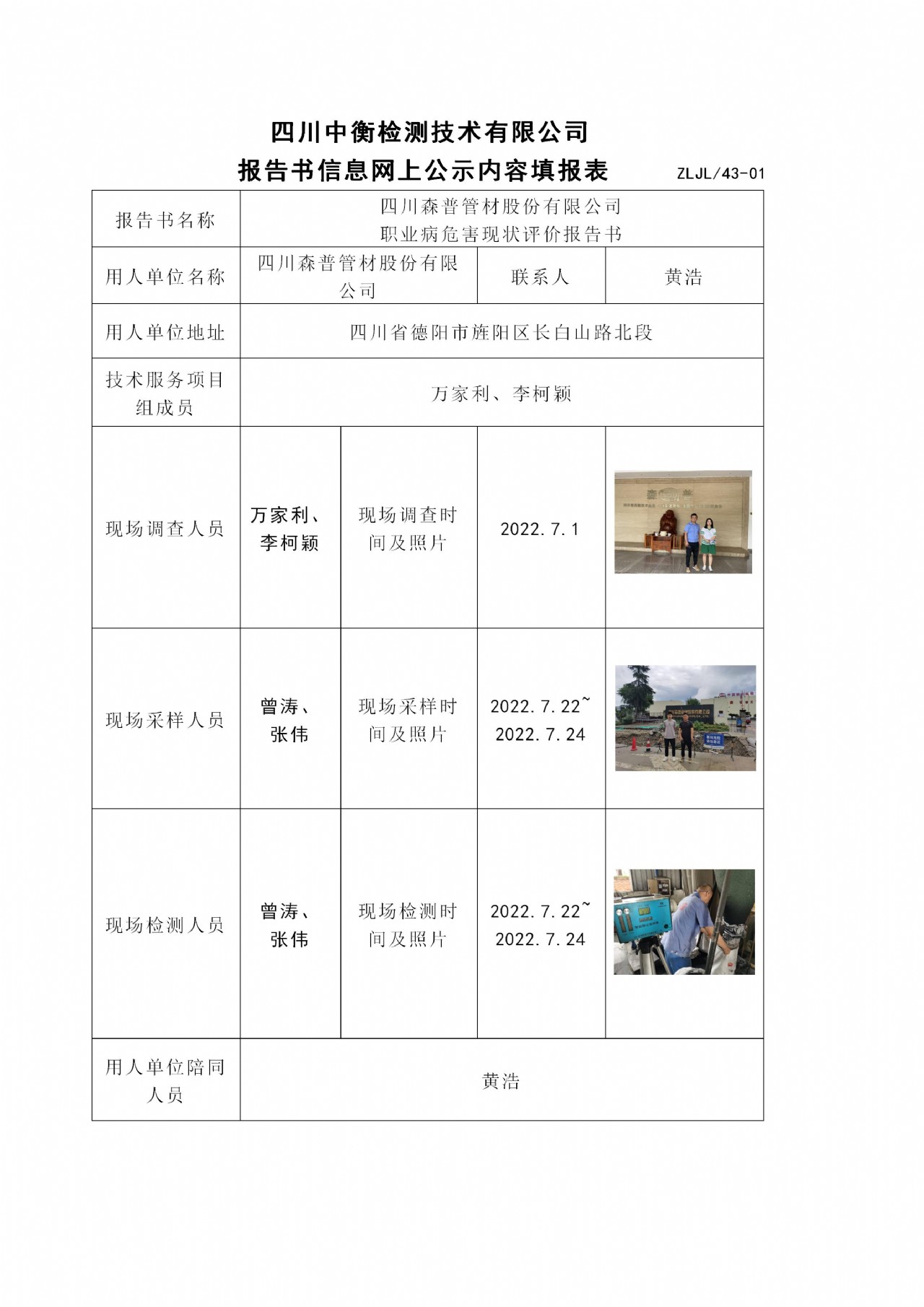 四川森普管材股份有限公司 職業(yè)病危害現(xiàn)狀評價(jià)