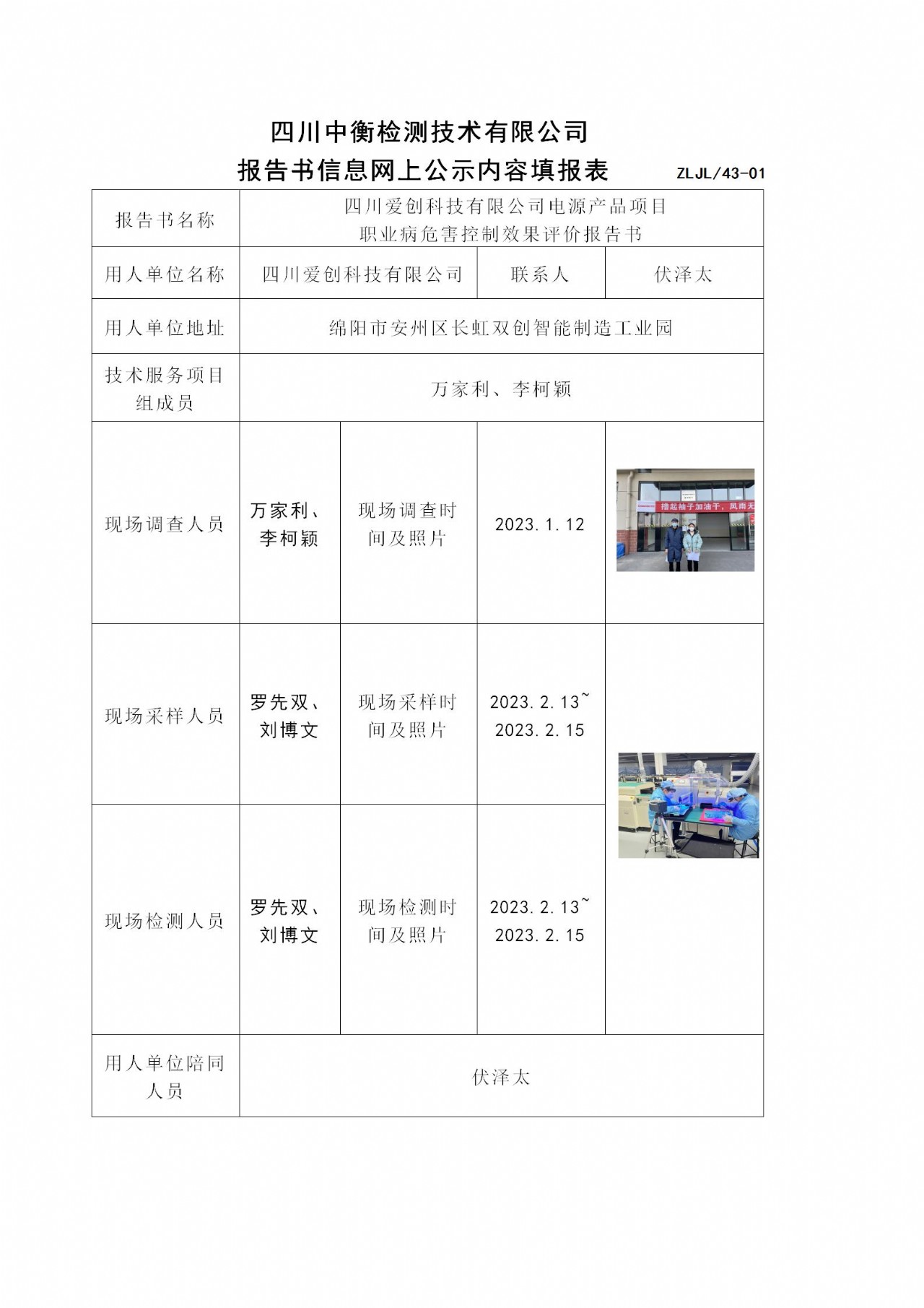 四川愛(ài)創(chuàng)科技有限公司電源產(chǎn)品項(xiàng)目 職業(yè)病危害控制效果評(píng)價(jià)