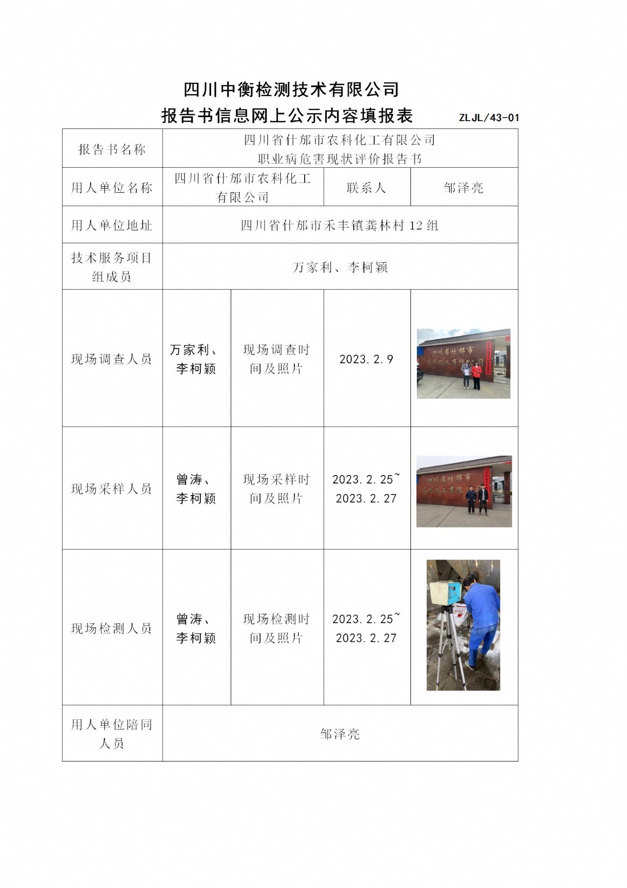 四川省什邡市農(nóng)科化工有限公司 職業(yè)病危害現(xiàn)狀評價(jià)